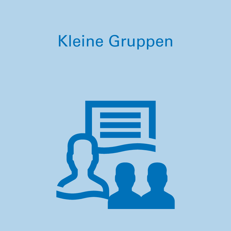 Bei der kleinen Gruppengröße von maximal 10 Teilnehmenden garantieren eine individuelle Reflexion und Beratung. Sie profitieren von einem hohen Lernerfolg, einer persönlichen Betreuung und individuellen Situationsanalyse.