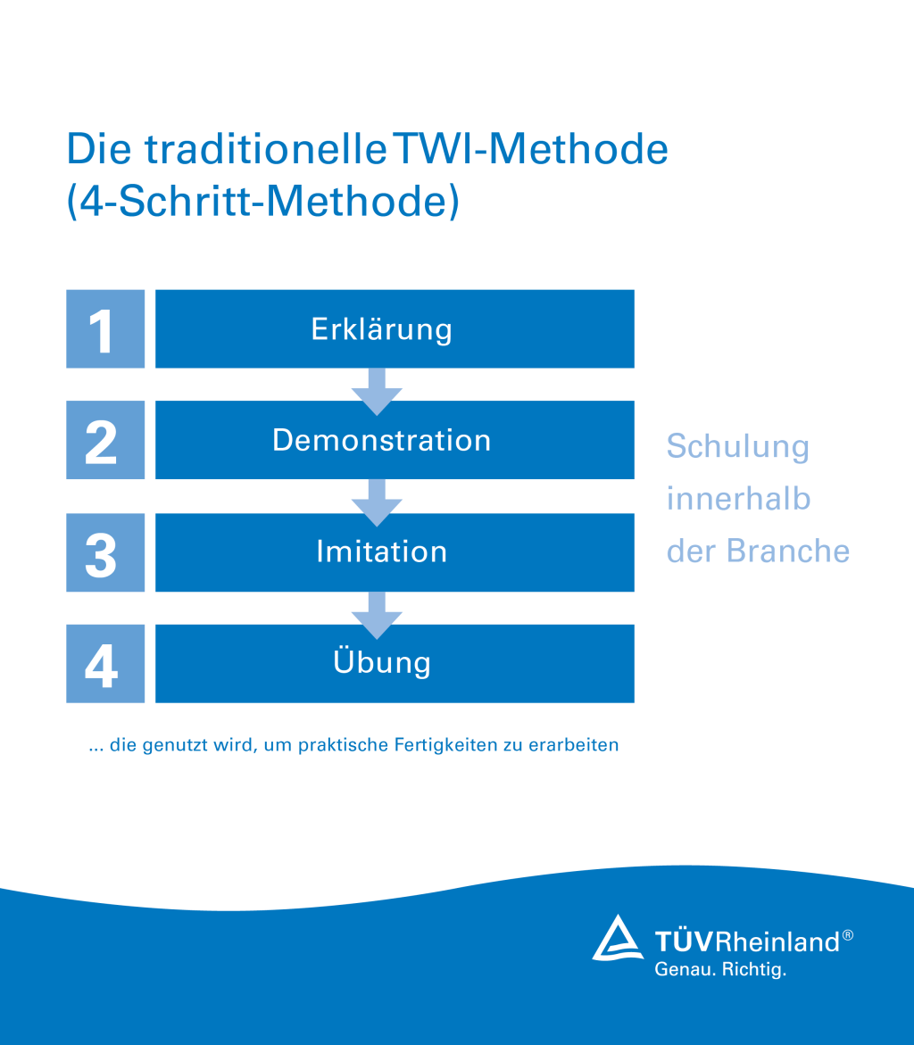 Dabei setzt TÜV Rheinland auf die effektive Verknüpfung analoger und digitaler Lernformen. Das so genannte „Blended Learning“ eröffnet zielgruppen- und situationsadäquate Möglichkeiten der Vermittlung von Lerninhalten und verbindet die schulische und praktische Ausbildung in den Werkstätten mit hochspannenden Lösungen aus dem Bereich Digital Learning, darunter den Einsatz von Computerspieltechnologien für Serious Games, Augmented und Mixed Reality (Hololens), Web Based Trainings. Mittels dieser Kombination können technische Inhalte anschaulich vermittelt werden. Die Funktionsweise und die Instandhaltung von Maschinen und ganzen Anlagen lässt sich virtuell üben, ohne dass der reale Prozess unterbrochen werden muss.