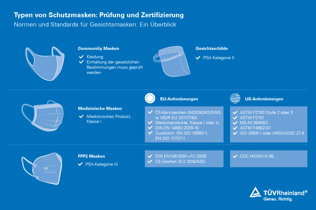 Manche Unternehmen haben sich besonders im Kampf gegen Covid-19 engagiert und dringend benötigte Produkte, wie Persönliche Schutzausrüstung (PSA) und medizinische Geräte in weit größeren Stückzahlen produziert als sonst üblich. Unsere Experten unterstützen Sie dabei, die lebensrettenden Produkte dort verfügbar zu machen, wo sie jetzt unbedingt gebraucht werden. Wir begleiten Sie kompetent bei der beschleunigten Markteinführung dieser Pandemie-kritischen Produkte und erhöhen die Produktsicherheit durch unabhängige Prüfung und Zertifizierung.