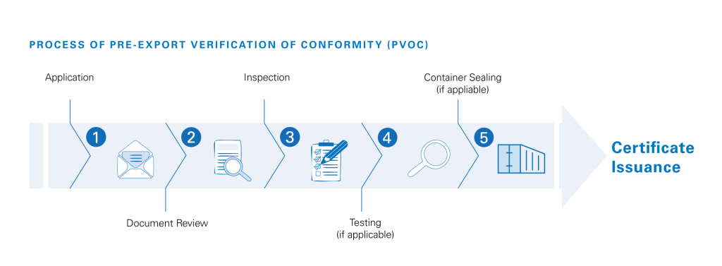 PVoC stands for Pre-Shipment Verification of Conformity. It is a service that ensures imported goods meet the required standards and regulations of the importing country.