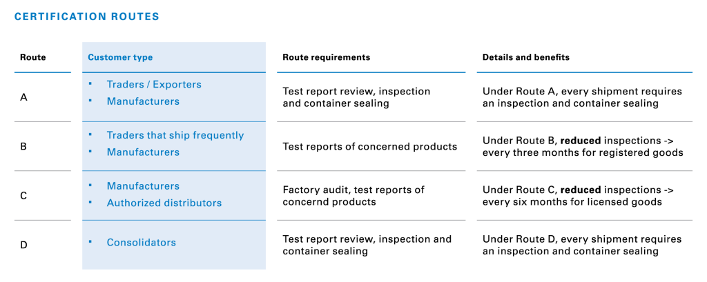 The certificate of conformity (CoC) is a document that verifies that imported goods are in line with the applied regulations and standards of the destination country.