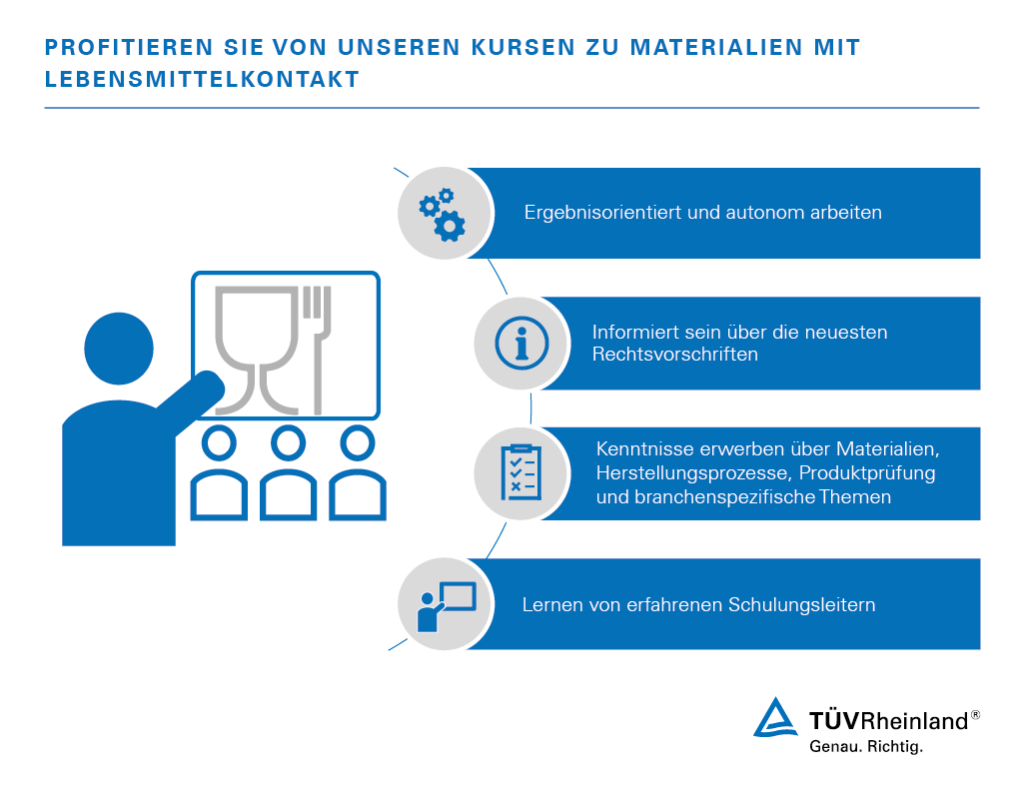 Kurse für jedermann mit unseren kundenspezifischen Schulungen zu Materialien mit Lebensmittelkontakt