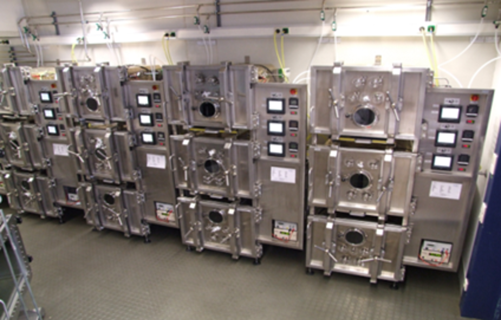 - Die Prüfkammer wird dann bis zu 28 Tage lang mit aufgereinigter Luft durchströmt.