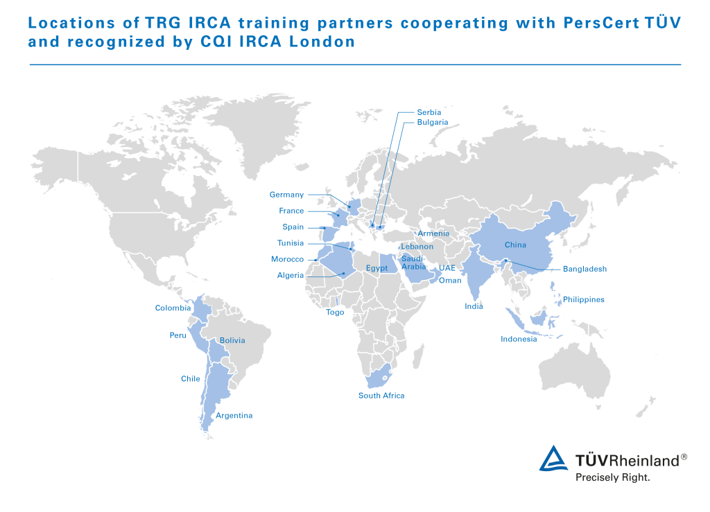 Locations with CQI IRCA London-recognized PersCert TÜV cooperating IRCA training partners of TÜV Rheinland Group