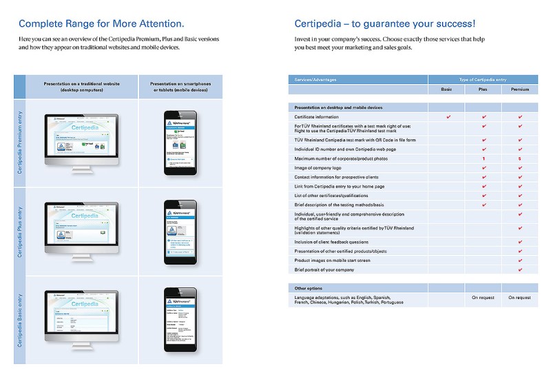 Pubblicando il vostro certificato TÜV Rheinland nel nostro database dei certificati on-line, è possibile: