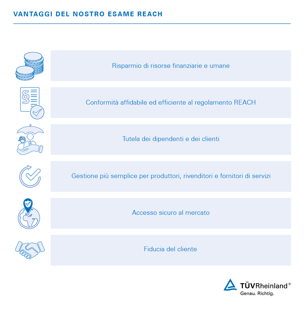 Puoi ottenere un accesso sicuro al mercato europeo attraverso la valutazione professionale dei tuoi prodotti. Grazie ai nostri esperti competenti e affidabili, rispetterai il regolamento REACH in modo economico e continuo. Ciò non solo aumenta la fiducia dei tuoi clienti nei confronti dei tuoi prodotti e servizi, ma ti consente anche di utilizzare le tue risorse finanziarie e umane in modo più efficiente.