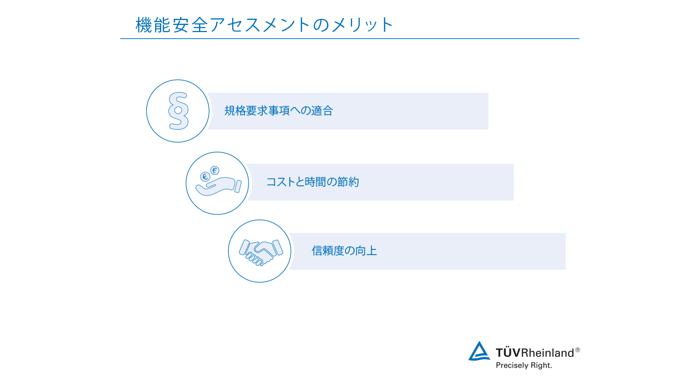 テュフ ラインランドは第三者認証機関として、機能安全の分野においても豊富な経験を有します。また、テュフ ラインランドの機能安全認証書とその認証マークはグローバルに認知されています。
