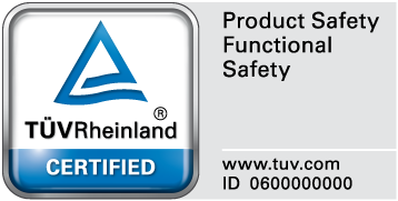 認証マークは、製品がユーザーマニュアルに記載の要求事項に従って規定のSIL / PLに則した安全機能での使用に適することを示します。「製品安全、機能安全」認証マークは、妥当な製品試験の内容が確認されたことを証明します。