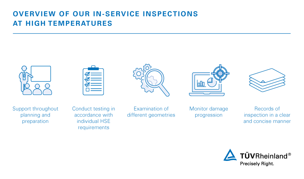 نقدم لك الخبرة اللازمة للقيام بعمليات الفحص أثناء الخدمة في درجات الحرارة العالية. لقد تم إختبار إجراءات الفحص الخاصة بنا بشكل دقيق لضمان نتائج لا تشوبها شائبة. فريقنا المؤهل وذو الخبرة للفحص: