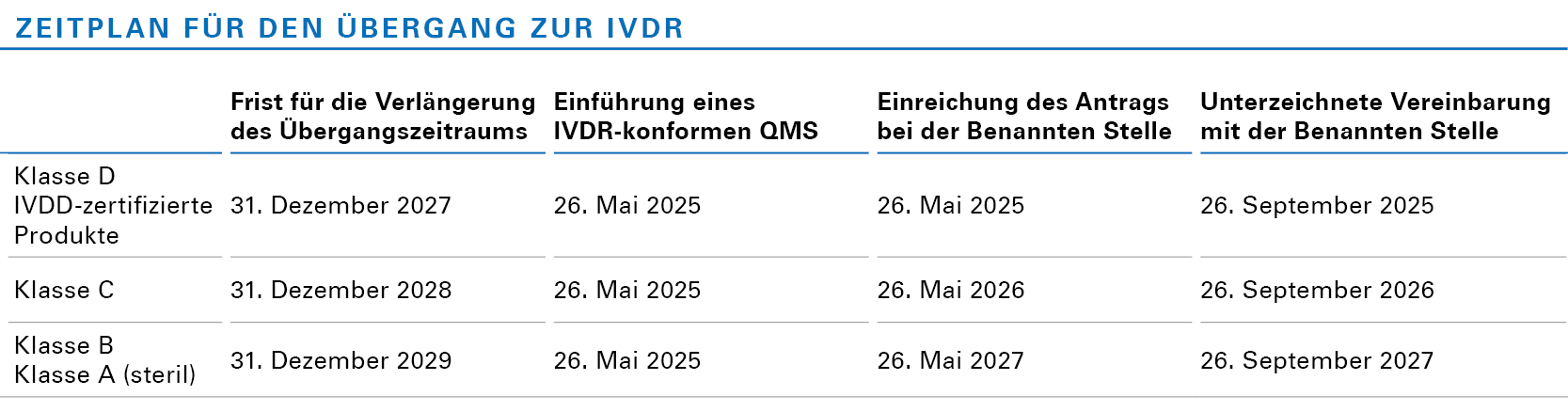 • Übergangsbestimmungen für bestimmte In-vitro-Diagnostika (IVDs).