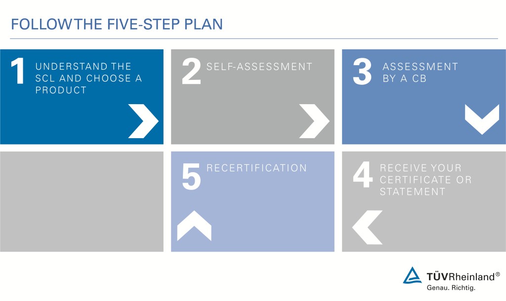 - SCL (Applicable up to Step 4): This SCL product also results in a three-year certificate, but the two interim audits cover 40% of the audit time compared to the initial audit. You have a free choice regarding self-assessment.
