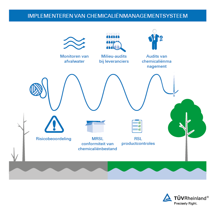 - Audits van toeleveranciers op basis van het ZDHC CMS (Chemical Management System) SAC Higg Index en maatwerkprogramma's voor het omgaan met relevante risico's.