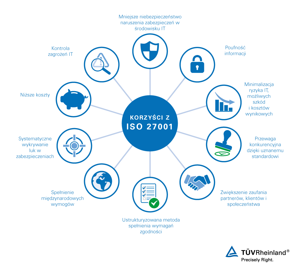 Zdobądź zaufanie klientów dzięki naszej niezależnej, uznanej na całym świecie certyfikacji ISO 27001. Zapewniając bezpieczeństwo systemów i procesów IT, a także poufne przetwarzanie informacji, spełniasz również międzynarodowe wymagania. Stwarza to dla Ciebie cenną przewagę nad konkurencją. Minimalizacja zagrożeń bezpieczeństwa i optymalizacja Twoich struktur również pomaga obniżyć koszty. Czy chcesz dowiedzieć się więcej o ISO 27001? Przeczytaj nasz FAQ .