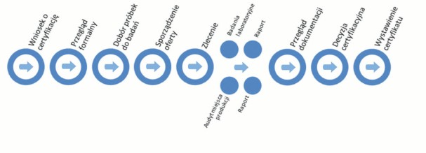 Proces certyfikacji składa się z kilku zasadniczych etapów i dla większości wyrobów ma podobny przebieg. Podmiot wprowadzający wyrób do obrotu zgłasza się do jednostki certyfikującej z wnioskiem o nadanie certyfikatu na dany wyrób lub grupę wyrobów. Najczęściej aplikacja odbywa się z wykorzystaniem formularza zapytania ofertowego będącego, z formalnego punktu widzenia, jednocześnie wnioskiem o certyfikację.