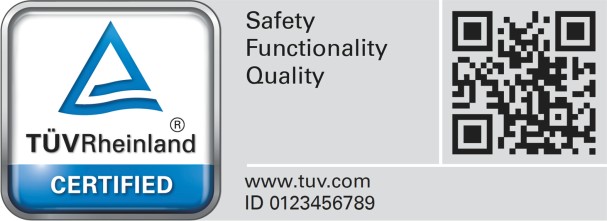 Zaprezentowany znak zgodności zawiera niepowtarzalny identyfikator w postaci numeru, który umożliwia zweryfikowanie i potwierdzenie autentyczności certyfikatu w międzynarodowej bazie www.certipedia.com. Znak zgodności TÜV Rheinland zawiera również QR kod, który po zeskanowaniu odsyła bezpośrednio do strony zawierającej podstawowe dane o certyfikowanym podmiocie, wyrobie oraz zastosowanych standardach podczas oceny zgodności. Całość stanowi zatem dodatkową reklamę dla produktu i producenta dostępną w formie elektronicznej zarówno dla użytkowników komputerów jak również urządzeń mobilnych.