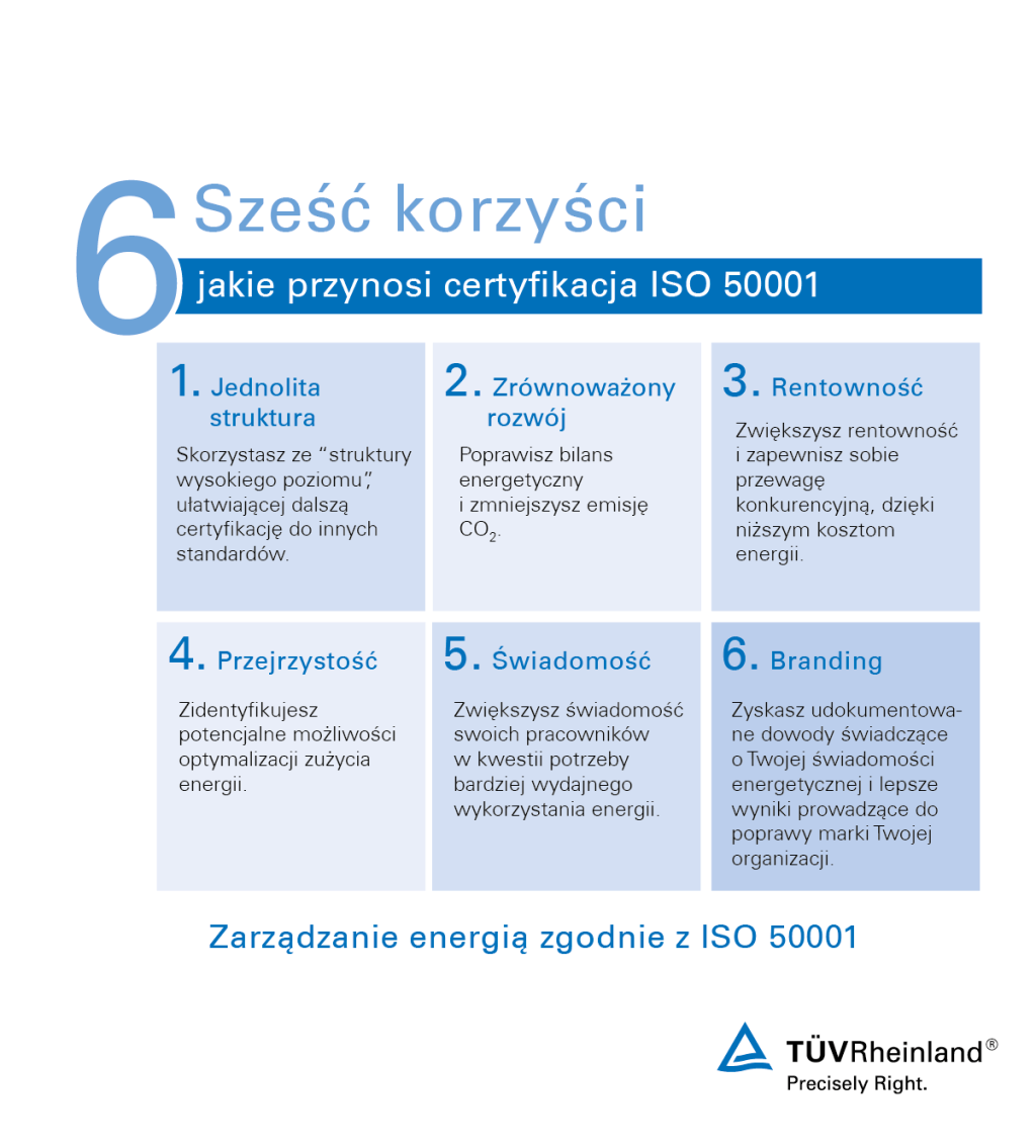 Międzynarodowa norma ISO 50001 określa wymagania dla firm w zakresie wprowadzenia, wdrożenia i doskonalenia systemu zarządzania energią. Dzięki systemowi zarządzania energią, firmy poprawiają swój bilans energetyczny, redukują emisję CO2 i obniżają koszty energii poprzez jej bardziej efektywne wykorzystanie.