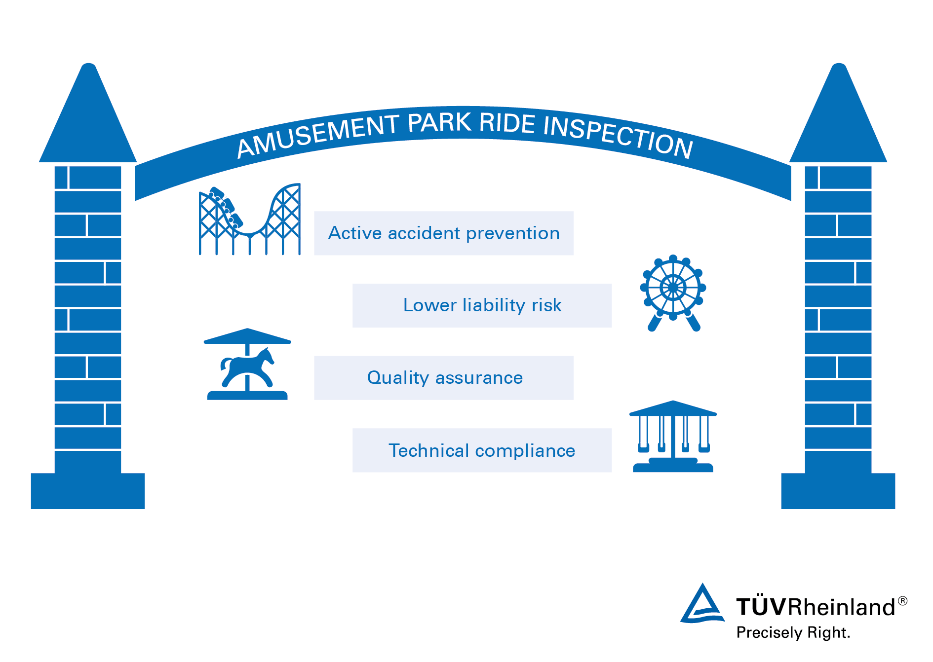 نقدم لك الخبرات اللازمة لإجراء خدمات الاختبارات والفحوصات والدعم المناسبة وفقًا للوائح مدن الملاهي، حيث نعمل جاهدين على تجنب الحوادث لمساعدتك في رفع الثقة لدى زوار المدينة ومستثمريها حول جودة وسلامة التركيبات والمعدات بالإضافة إلى تقليل المخاطر. نقدم لك الدعم والمساعدة للتأكد من استيفاء مدينتك لكافة المتطلبات المنصوص عليها في إرشادات التركيبات المؤقتة وقوانين البناء.