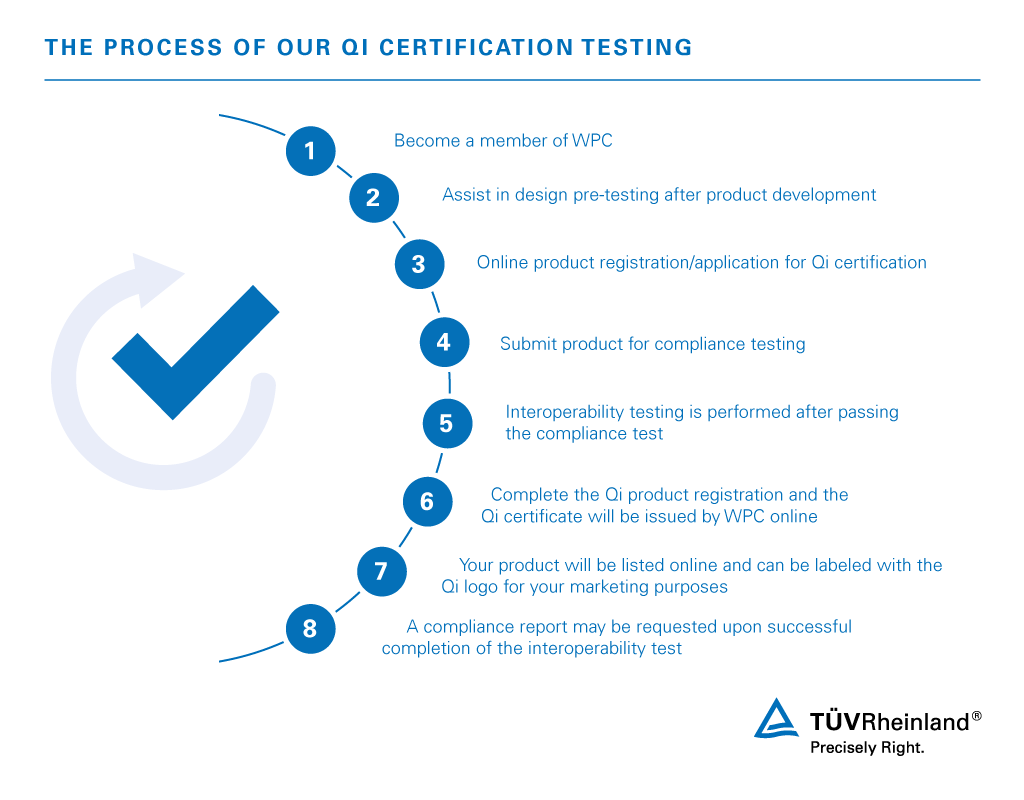 - Qi certificate will be issued on-line by WPC after completed product registration and successful compliance and interoperability testing.